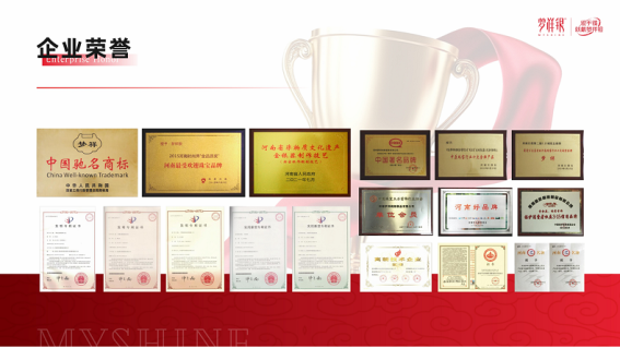 梦祥银坚守匠人精神,深耕30余载,现拥有现代化标准厂房9800多平米,展厅10000多平米,员工1000多人,各类专业技术人员和管理人员近百人。以此为基础,企业积极推进非遗技艺与技术创新的深度融合,通过与世界先进生产工艺接轨,在产品开发和科技创新方面持续发力——不仅突破多项核心技术,更实现产品品质与生产效率的双重跃升。其银饰锻制技艺于2021年入选河南省非物质文化遗产名录,自主研发的银胎景泰蓝技术于2010年获国家发明专利,为企业产业根基筑牢了科技支撑。